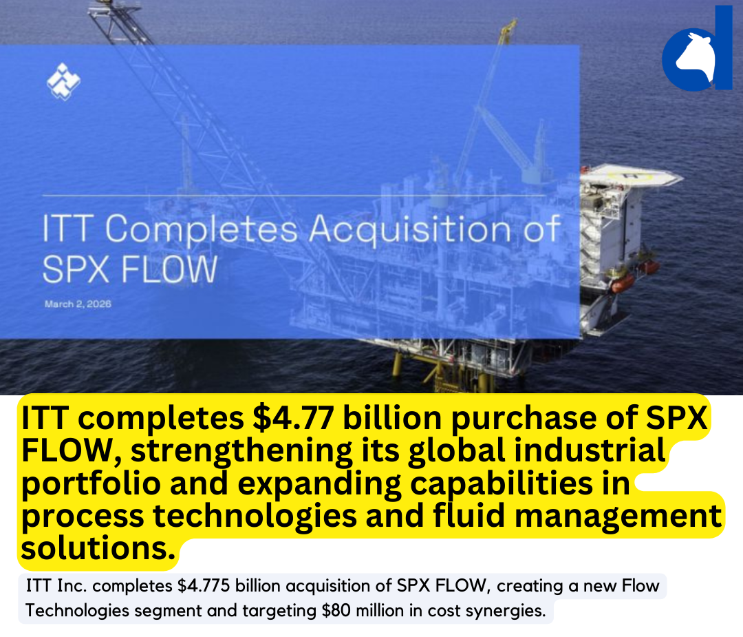 ITT Completes $4.77 Billion Acquisition of SPX FLOW to Strengthen Flow Technologies Segment Read More » Hema Singh March 7, 2026