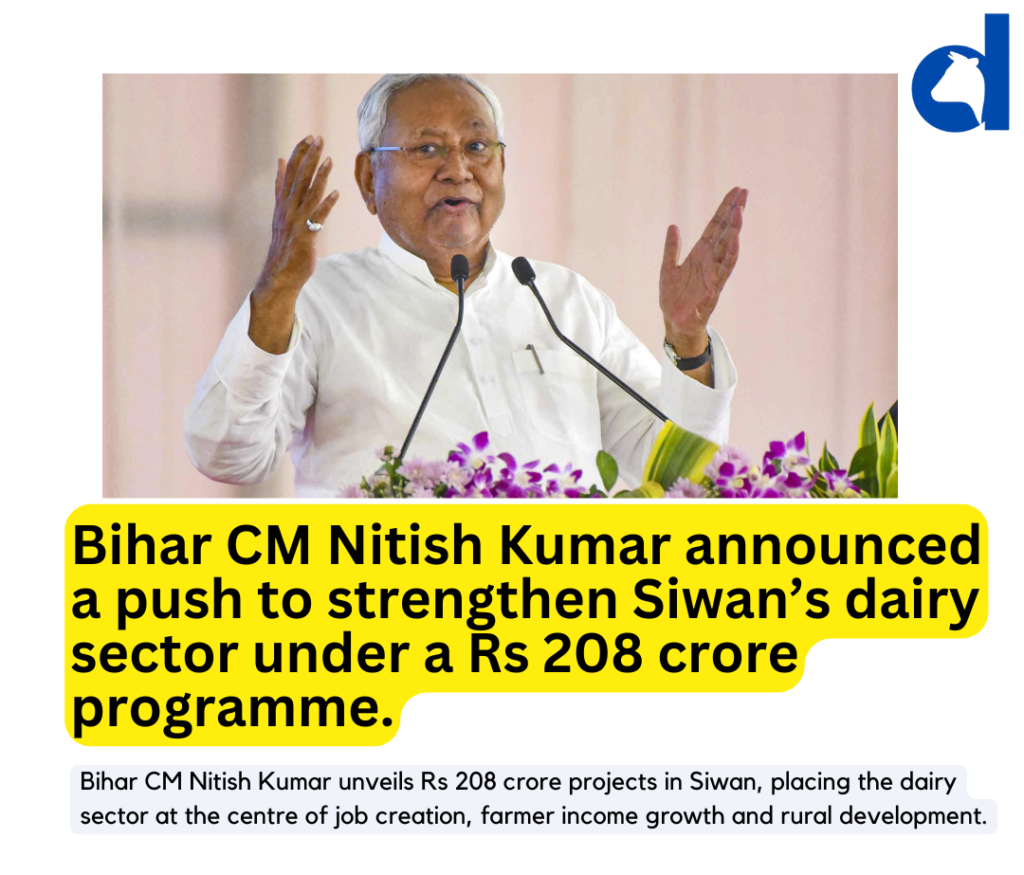 Bihar Chief Minister Nitish Kumar has positioned the dairy sector as a key driver of rural employment and farmer income while unveiling 71 development projects worth Rs 208 crore in Siwan district. The announcement came during his Samriddhi Yatra, reflecting the state’s renewed focus on agriculture-linked livelihoods.