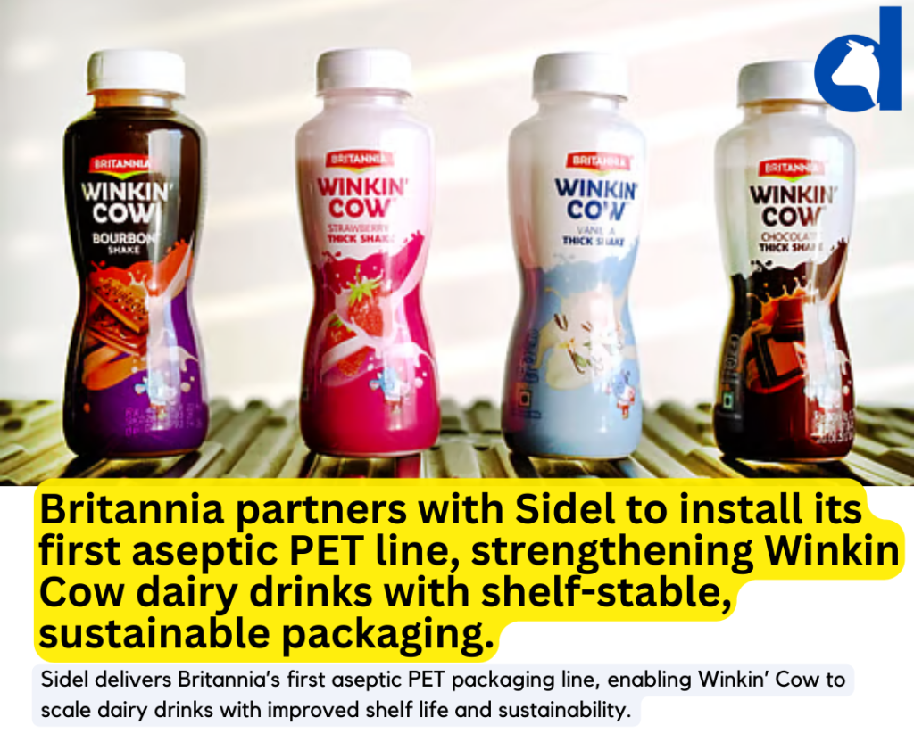 Global packaging solutions provider Sidel has delivered Britannia Industries Limited’s first-ever aseptic PET packaging line, marking a significant technological milestone in the company’s dairy beverages expansion under its Winkin’ Cow portfolio.