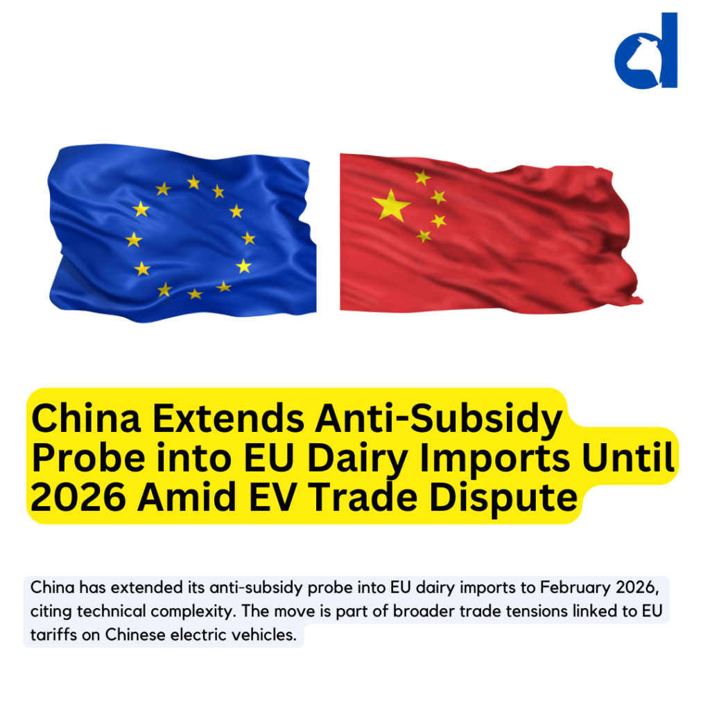 Beijing, August 21, 2025 — China has officially extended its anti-subsidy investigation into dairy imports from the European Union (EU) by six months, with the new deadline set for February 21, 2026, according to its Ministry of Commerce.