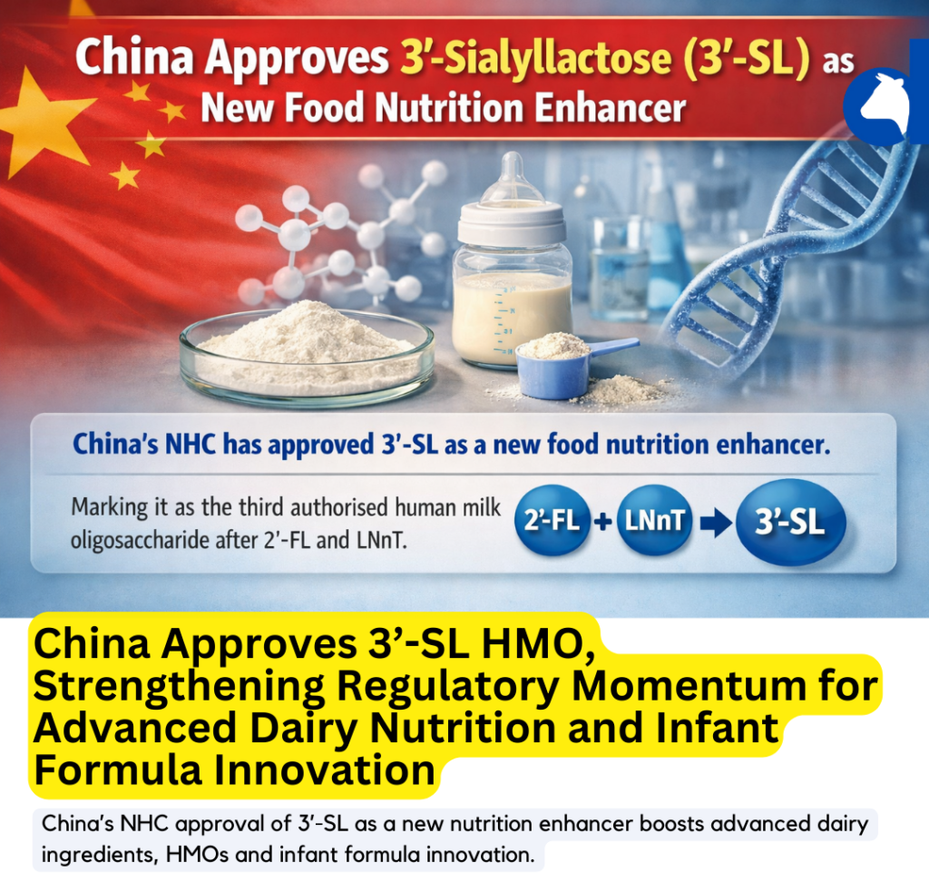 China’s approval of 3’-Sialyllactose (3’-SL) as a new food nutrition enhancer marks a significant regulatory and commercial milestone for the global dairy ingredients and infant nutrition sectors. Issued under the National Health Commission’s (NHC) No.1 Announcement of 2026, the decision formally positions 3’-SL as the third authorised human milk oligosaccharide (HMO) in China, following 2’-FL and LNnT.