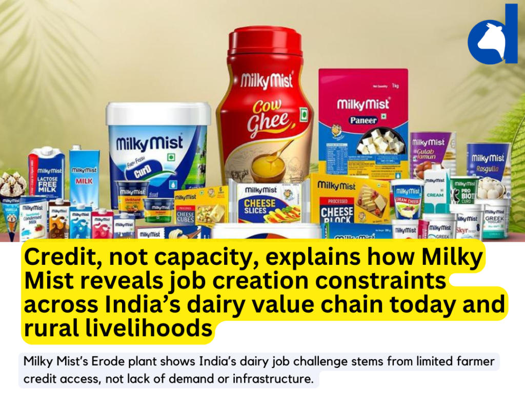 The lesson from Milky Mist is clear. India’s dairy job challenge does not stem from a lack of enterprise or investment. It stems from the failure to enable farmers to participate fully in growth. If policymakers focus on credit as seriously as they focus on capacity, dairy can become one of India’s most powerful employment engines.