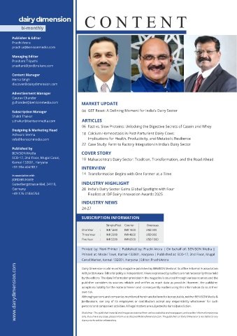 www.dairydimension.com by the editors. The data/information provided in the magazine is sourced through various sources and the
