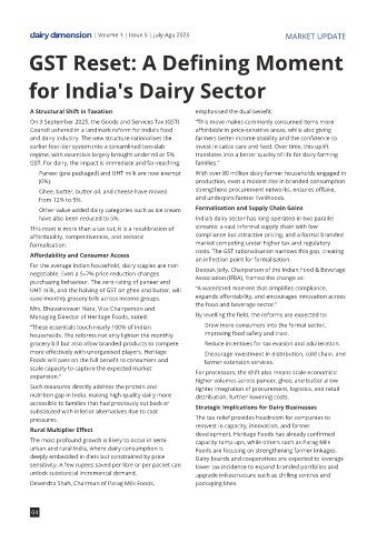 GST. For dairy, the impact is immediate and far-reaching: families.” · Farmer empowerment – generating stable
