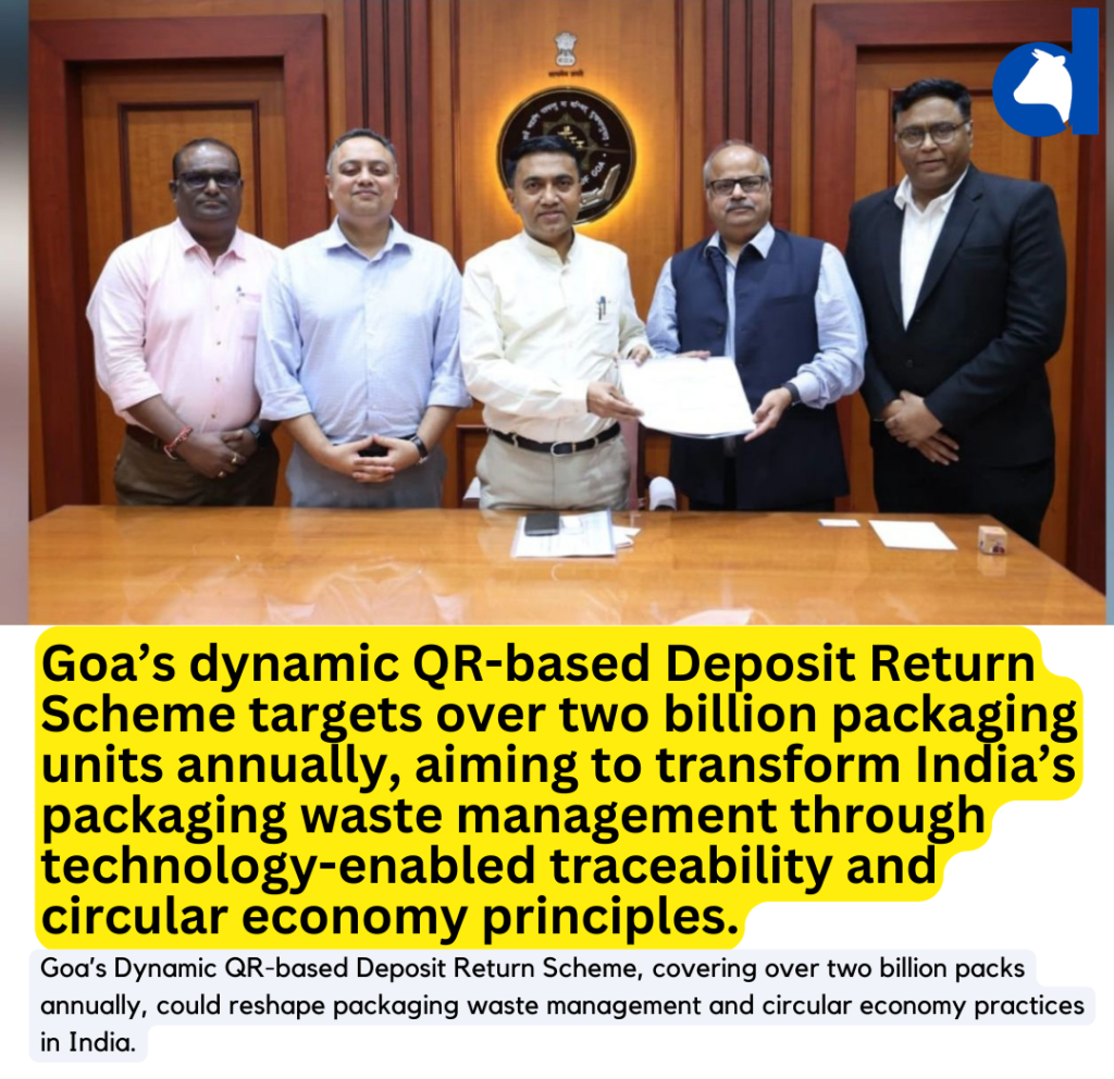 Goa’s Dynamic QR-based Deposit Return Scheme represents a bold experiment in technology-enabled circular economy design. If supported by adequate trials, stakeholder cooperation, and cost-sensitive implementation, it could redefine how India approaches packaging waste, particularly for high-volume sectors such as dairy and beverages.