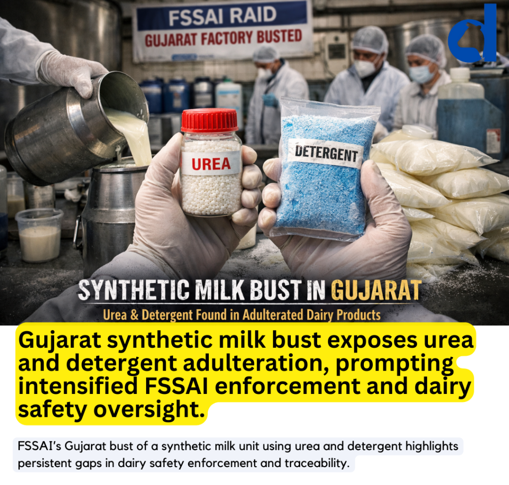 The recent bust of a synthetic milk manufacturing unit in Gujarat’s Sabarkantha district has once again exposed deep vulnerabilities in India’s dairy safety and enforcement framework. Acting on specific intelligence, officials from the Food Safety and Standards Authority of India (FSSAI) raided a facility that had allegedly been producing and distributing adulterated milk and buttermilk for nearly five years.