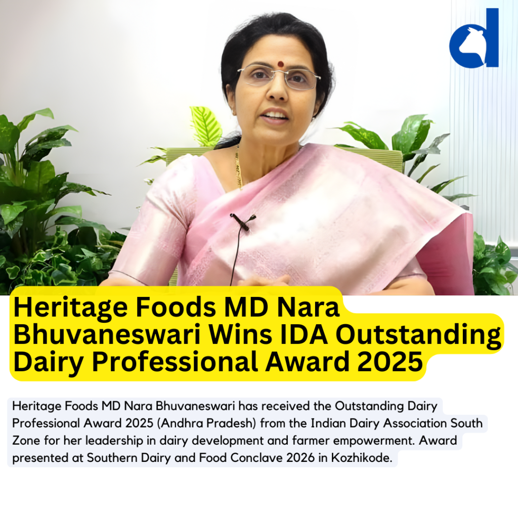 Kozhikode, Kerala – Nara Bhuvaneswari, Vice Chairperson and Managing Director of Heritage Foods Limited, has been conferred with the Outstanding Dairy Professional Award 2025 (Andhra Pradesh) by the Indian Dairy Association (IDA) South Zone, recognising her enduring leadership and contribution to the development of the dairy sector and rural farmer empowerment.