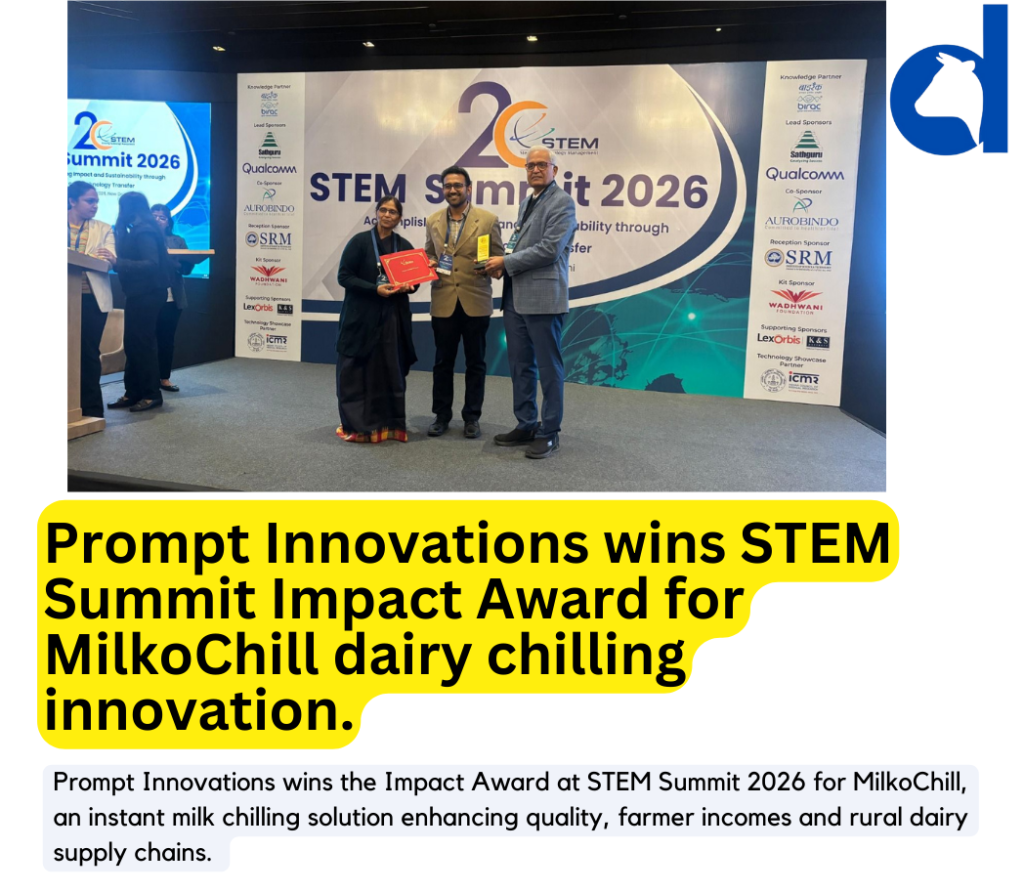 Technology-driven solutions for grassroots dairy challenges took centre stage at the STEM Summit 2026 in New Delhi, where Prompt Innovations Pvt. Ltd. received the Impact Award for its milk chilling technology, MilkoChill. The recognition from the Society for Technology Management highlights the growing importance of decentralised cold-chain innovations in strengthening India’s rural dairy economy.