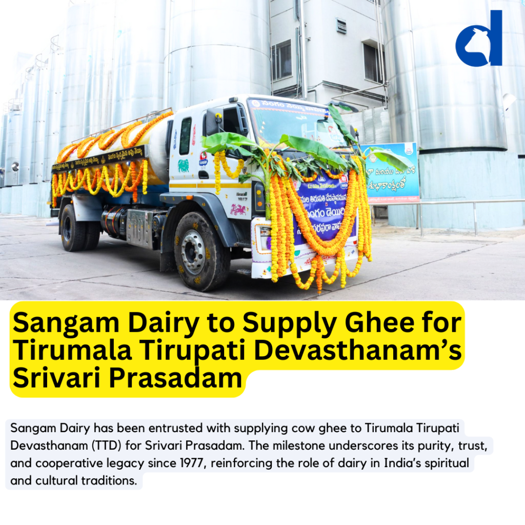 Supplying ghee for Srivari Prasadam is not just a commercial opportunity; it is a cultural and religious honour. For Sangam Dairy, this mandate reinforces its stature as one of Andhra Pradesh’s most trusted cooperatives and highlights the role of dairy cooperatives in cultural preservation alongside economic contribution.
